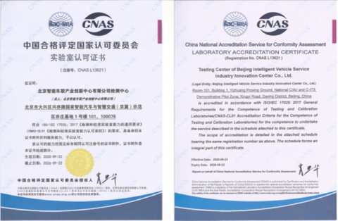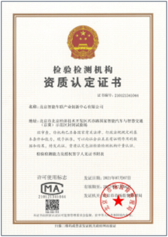 2021年7月7日,亦庄基地获得CMA检验检测机构资质认证证书,此次认证包含高级辅助驾驶功能检测等能力。CMA(中国计量认证)是根据中华人民共和国计量法的规定,由省级以上人民政府计量行政部门对检测机构的检测能力及可靠性进行的一种全面的认证及评价。